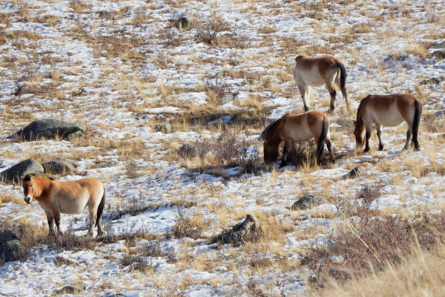 Nous quittons Ulaan Baatar pour de bon. Très rapidement, nous découvrons les grands espaces qui évoquent à tous la Mongolie sauvage. Après un rapide pique-nique au milieux d’un petit spot sablonneux, nous repartons pour atteindre la réserve de Khustai connue pour les chevaux sauvages de Przewalski (Takhi), une espèce endémique. Ces takhis, partagent avec les chevaux un ancêtre commun, à partir duquel leurs évolutions ont divergé au point d’être incompatibles pour la procréation et d’avoir un nombre de chromosomes différents.