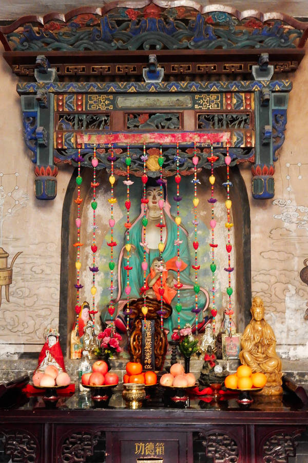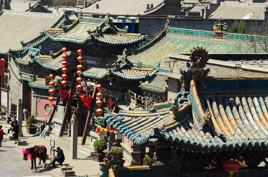 Nouvelle destination, Pingyao, ou plus exactement l’ancienne cité de Pingyao dans la province de Shanxi, à quatre heures de train rapide de Beijing. La vieille ville est ceinte d’un rempart de 6 km de long, de 12 mètres de haut et d’une épaisseur de 4 mètres, bâti au 14eme siècle. A l’intérieur de l’enceinte, de très nombreuses habitations et commerces abritent environ 50000 personnes. 72 tours de guets sont reparties régulièrement autour de la ville. Toutes les rues sont pavées de briques grises et le style des maisons est d’une homogénéité sans faille: Toitures de briques grises, dessinant d’élégants cylindres guidant les écoulements, murs de briques noires et boiseries peintes, auxquelles sont suspendues de nombreuses lanternes de papier chinoises diversement colorées, mais a dominante rouge. Des dragons de pierre grise veillent sur les sommets des toits. De nombreux temples se fondent dans la ville.