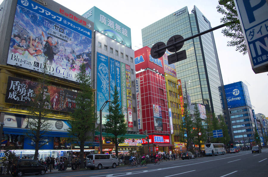 Ambiance toute différente dans le quartier Akihabara, mecque de l’électronique et de la culture manga, avec ses nombreuses « Taito game station », le bâtiment Sega (et plus loin cependant la tour Konami), qui nous rappellent qu’ici, a débuté l’histoire du jeu vidéo. Ici, c’est a grand renfort de haut parleurs que les slogans sont lancés, parfois par de jeunes femmes en tenue d’écolière (ou cosplay) plutôt courtes et colorées.