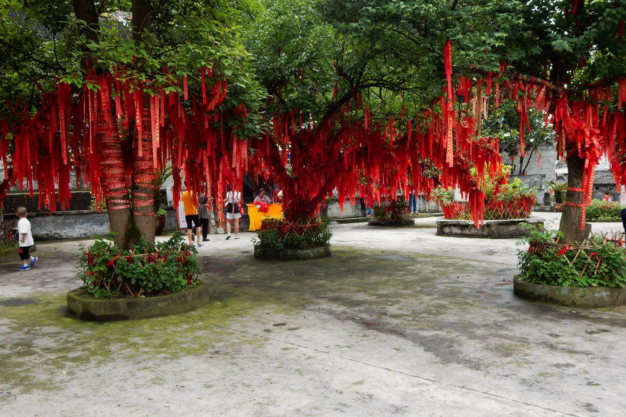 Nous avons aussi visité un temple bouddhiste très coloré sur les hauteurs de la ville, avec ses nombreux drapeaux de prières et ses arbres aux mille rubans.
