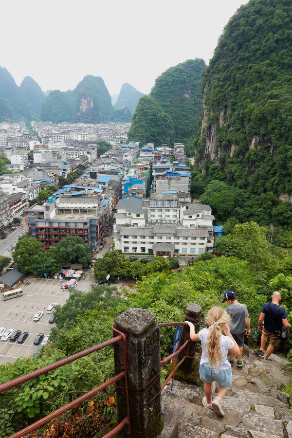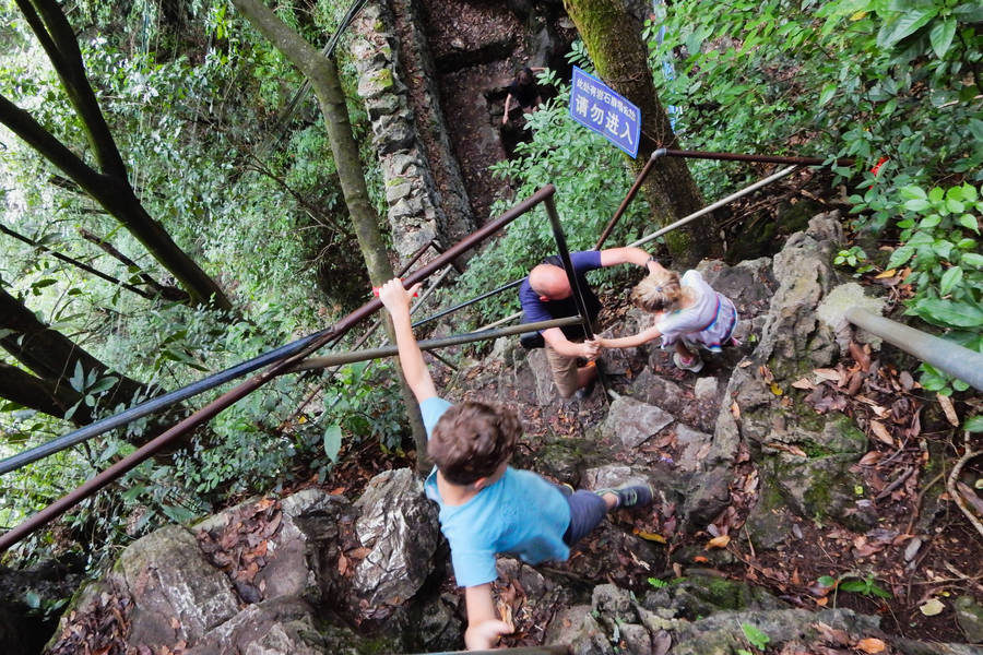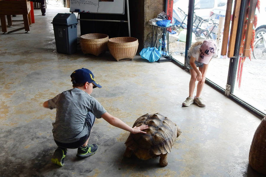 Nous sommes allés a Yangshuo, dans le sud de la Chine. Nous avons dormi dans une guesthouse, c’est un peu comme un hôtel. Il y avait une très grosse tortue qui s’appelle Jake. Nous sommes montés sur des formations karstiques, ce sont des montagnes pointues.