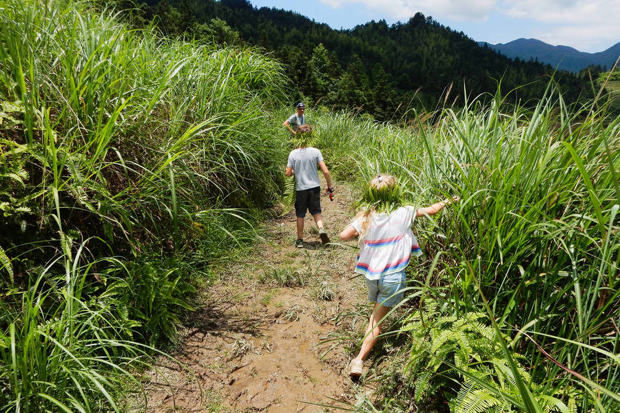Nous sommes aussi allés dans les rizières en terrasses de Longji. Elles étaient sur la montagne, les gens cultivaient le riz. Il y avait un système d’irrigation qui permettait de remplir chaque bassin pour arroser.
