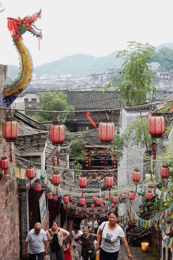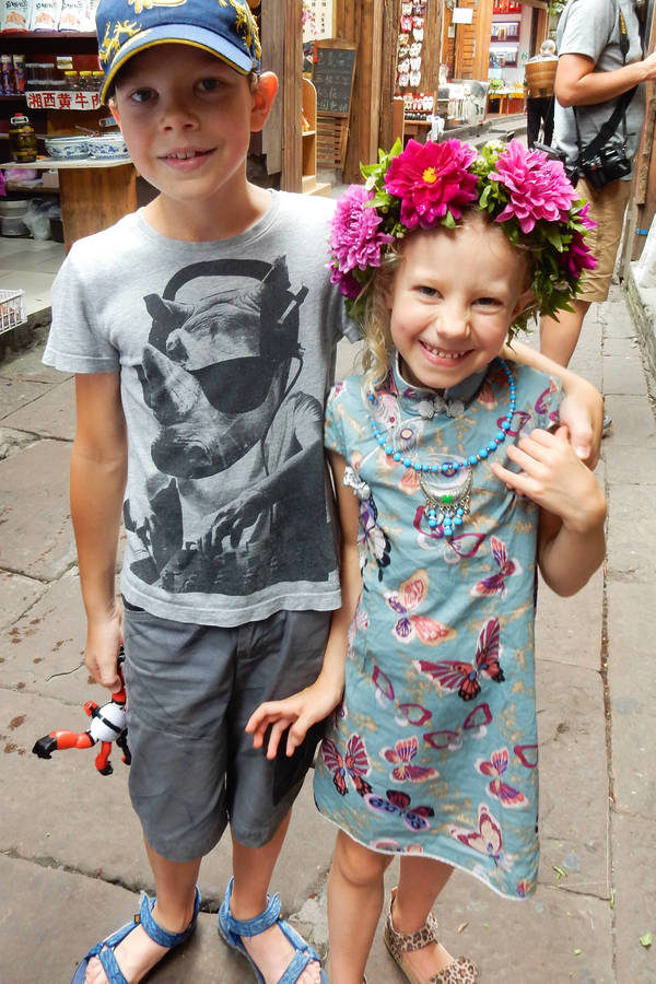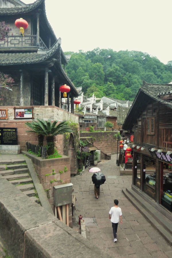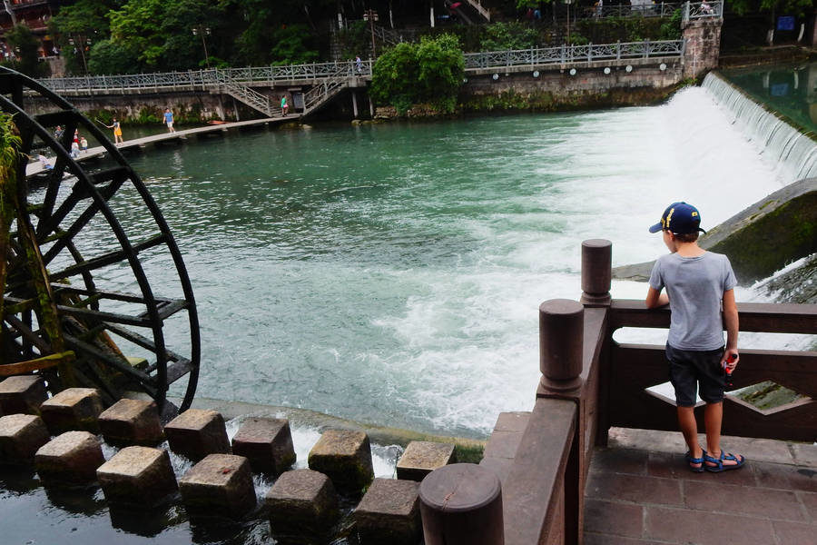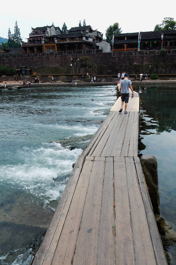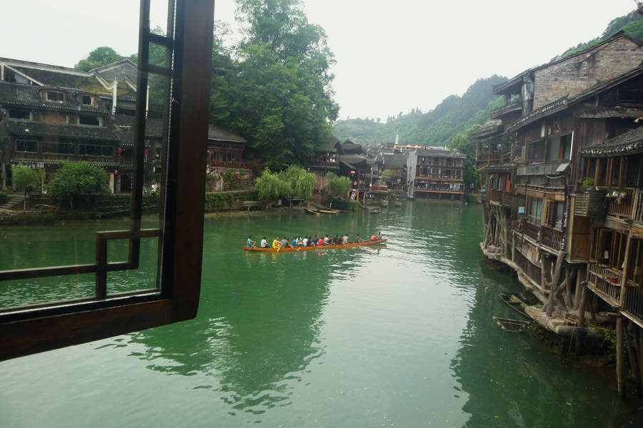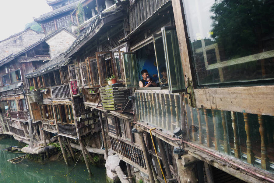 A Fenghuang, une vieille ville très jolie, nous avons vu des courses de bateaux dragon sur la rivière. Il y avait des maisons avec des piliers au dessus de l’eau, des pilotis, et beaucoup de ponts en bois.