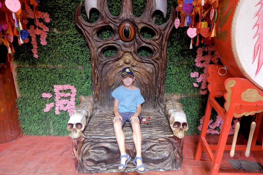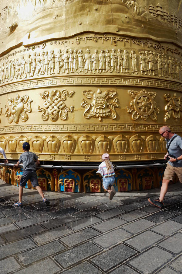 J’ai bien aimé tourner le rouleau de prière et faire du scooter (j’ai tenu l’accélérateur!)