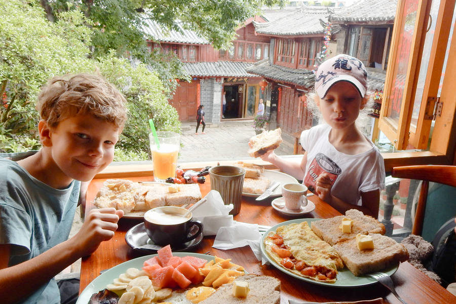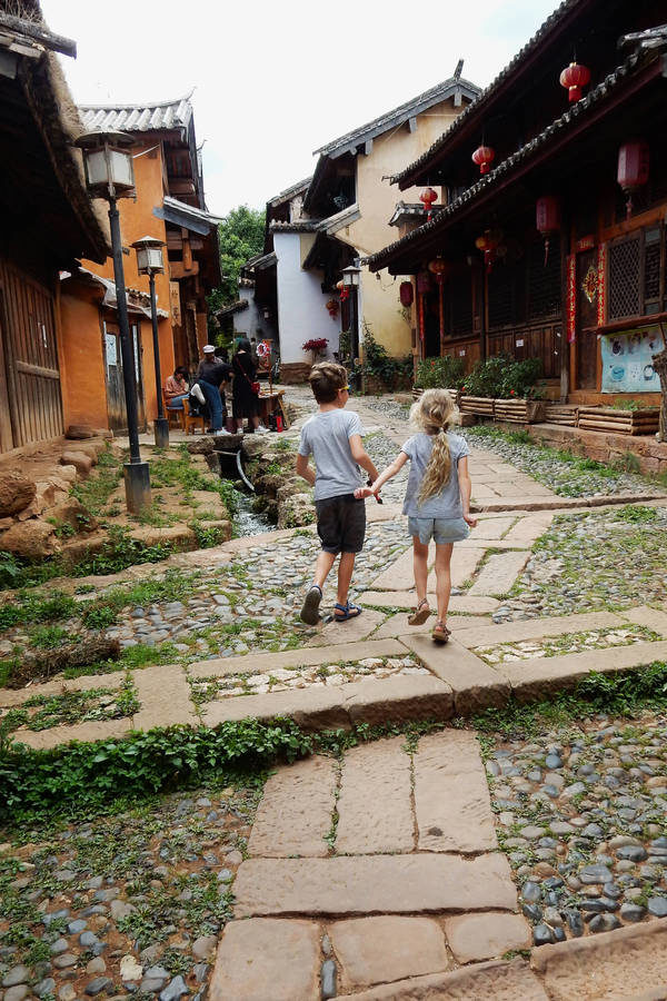 Dans la ville de Lijiang, il y avait des rues étroites pavées et des canaux (des petits ruisseaux).