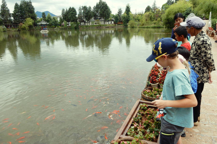 Nous sommes allés à Dali, encore une vieille ville. Nous avons vu le temple des trois pagodes. Nous sommes montés sur une montagne, Cangshan, avec un téléphérique. Il y avait un temple bouddhiste dans la forêt. J’ai trouvé une grande plume très belle!