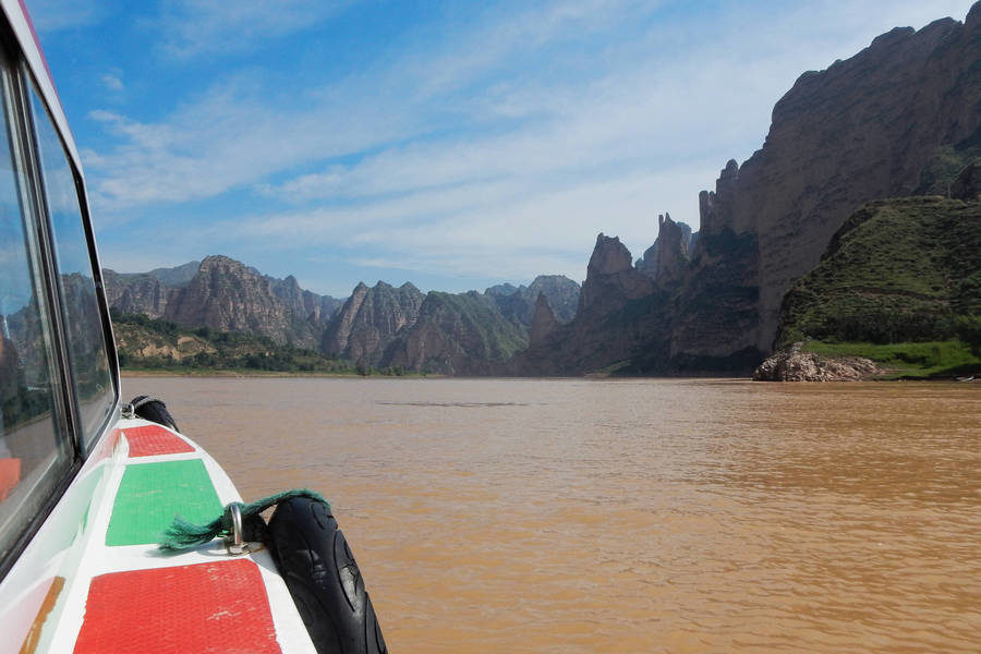 Après un saut de puce en taxi, nous voici au bord du barrage de Liujiaxia. Nous prenons une petite embarcation qui 35 km plus loin nous déposera sur le site. Le bateau repartira 1h30 plus tard, le timing est imposé ici, voir optimisé puisque sans traîner il nous a fallut 1h35 pour voir le strict minimum.