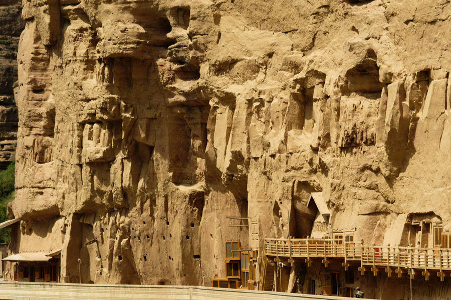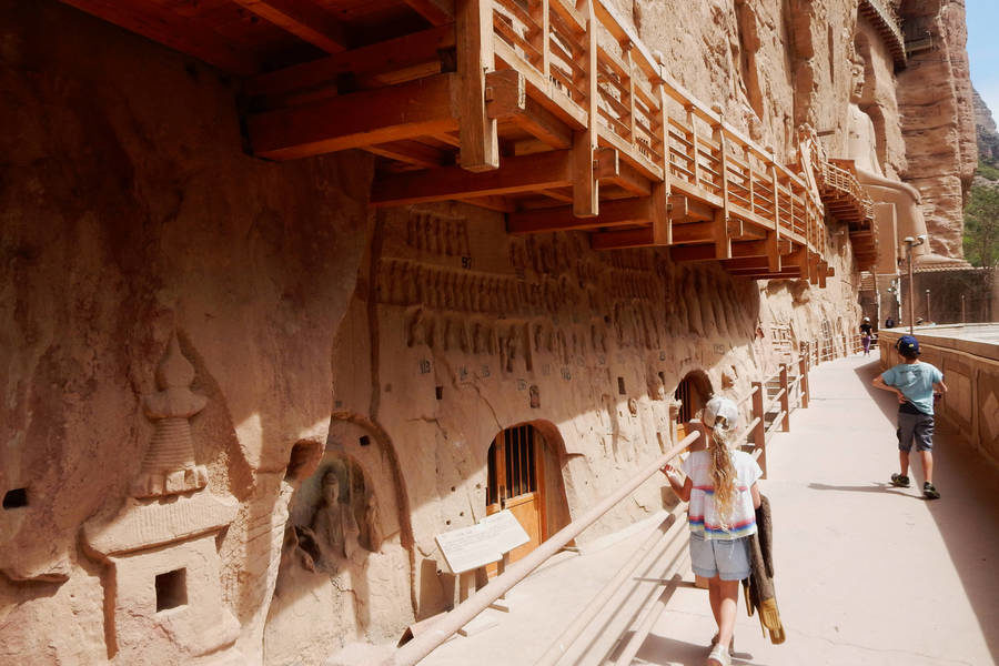 Le site est au final plutôt restreint, se résumant à un petit canyon de direction est-ouest dont la face sud est gravée de nombreuses sculptures. L’édification du site s’étale du III siècle au IV siècle sous plusieurs dynasties. Le clou du spectacle s’articule autour d’un gigantesque bouddha dont l’état de conservation tranche brutalement avec les gravures qui le précédent. On le jurerait coulé par Bouygues entre deux prisons et une statue de Niazov. Nonobstant ces petites critiques, il se dégage du site un léger parfum de Pétra plutôt plaisant.
