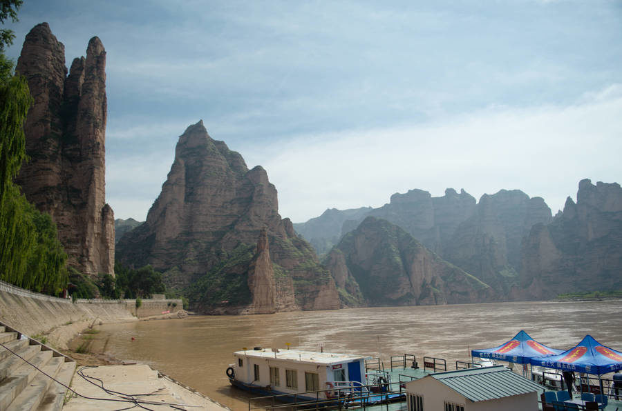 Les paysages alentours sont beaux, avec des formations tortueuses de roches rouges sculptées il y a longtemps par les eaux. Ce qui se remarque immédiatement ce sont les titanesques travaux d’aménagement en cours. Là où l’eau s’écoulait naguère, les autorités ont décidé de faire une grande zone sèche. Un parking pour A380 peut être. Par l’annexion du Tibet, la Chine possède la plus haute montagne du monde. Si cela n’avait pas suffit elle l’aurait construite.