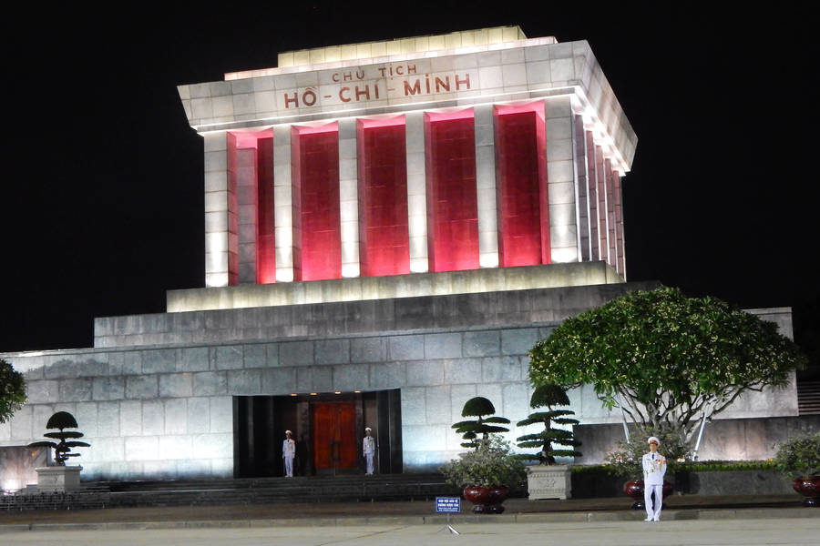 Nous visitons les environs avec l’église des martyrs reconnaissable à son jaune indescriptible, et différentiable du palais présidentiel seulement grâce à ses ostensibles croix. Nous passerons à la tombée de la nuit près du lac de l’Ouest et traverserons la place du mausolée de Ho Chi Min, après passage au rayons X (Cocteau affirmait dans son Orphée, que la déformation professionnelle était une des plus tenaces !) de tous nos sacs.