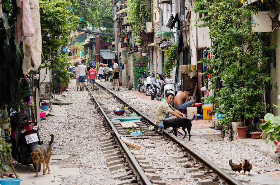 Marcher le long des rails apporte un point de vue de haut plutôt intéressant pour observer la ville, ses petits étals et ses minuscules bars.