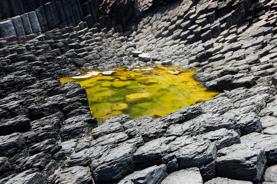 Notre premier objectif sera le site géologique. Les Orgues basaltiques se forment lorsque une coulée de roche noire basaltique se refroidi plus vite en surface qu’en profondeur. S’en suivent des fractures verticales hexagonales, parallèles entre elles. Le résultat est bien souvent esthétique et même s’il n’est pas rare, on n’en rencontre pas tous les jours.
